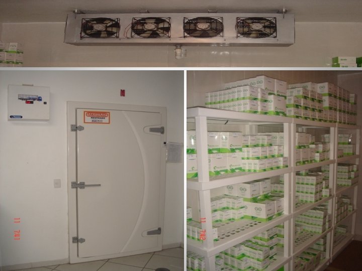 ARMAZENAMENTO DE KITS DIAGNÓSTICOS EM TEMPERATURA REFRIGERADA ARMAZENAMENTO NA FABRICAÇÃO ü Onde são armazenados após sua fabricação. ü Controle de armazenamento nas câmaras frias.