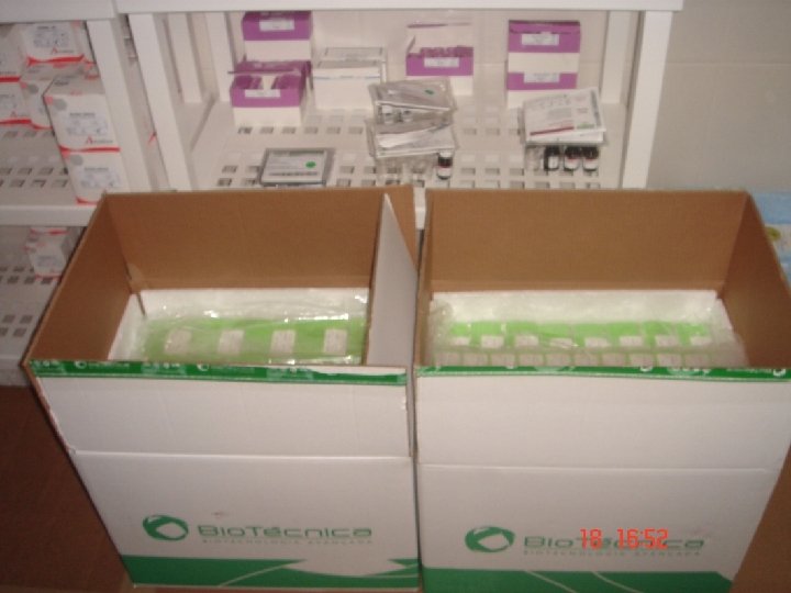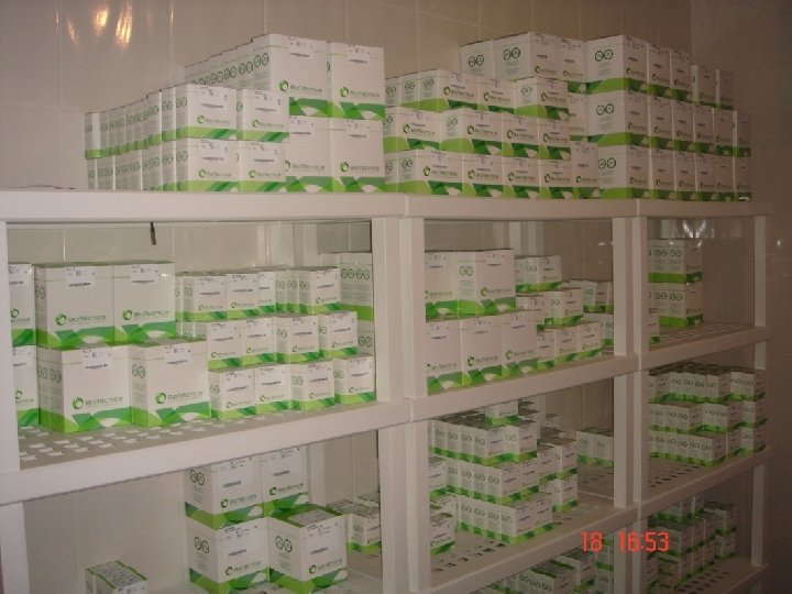 ARMAZENAMENTO DE KITS DIAGNÓSTICOS EM TEMPERATURA REFRIGERADA ARMAZENAMENTO NO DESTINO (DISTRIBUIDOR OU CLIENTE FINAL) ü Procedimentos na abertura das embalagens ü Verificação na temperatura à ser estocado ü Como devem ser estocados ü Verificação das validades ü Descarte dos reagentes após o vencimento