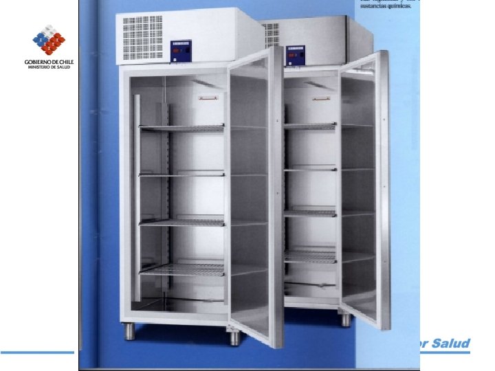 EQUIPOS REFRIGERANTES • Refrigerador profesional con sistema de frió dinámico. • Puerta cristal aislante e iluminación interior. • Interior y exterior de acero inoxidable, y con guías y rejillas de acero inoxidable. • Patas robustas y regulables de acero inoxidable, o ruedas con freno de bloqueo. • Indicación digital de Tº en cámara y producto (sonda móvil de Tº). • Regulación de Temperatura : en cámara -4º C en producto +2 +4ºC. • Capacidad 650 -700 litros.