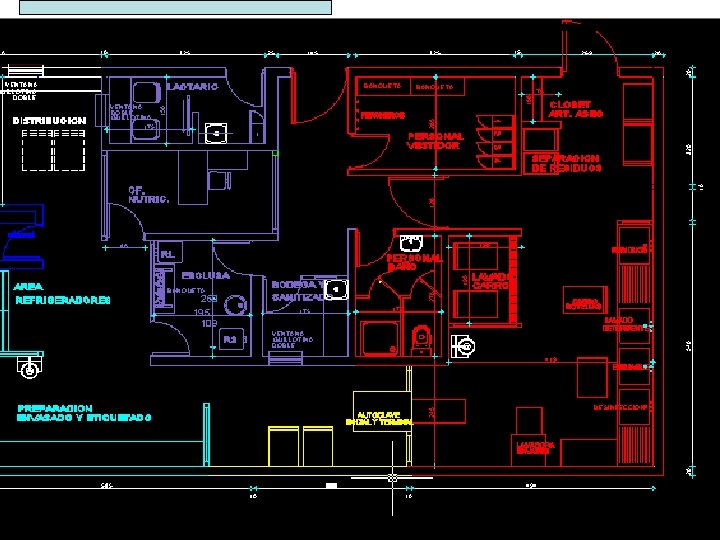 ILUMINACION • Luz natural o artificial • Lámparas fluorescentes con tapas protectoras • 540 lux en todos los puntos • Tablero eléctrico propio • Conectado a grupo electrógeno de emergencia