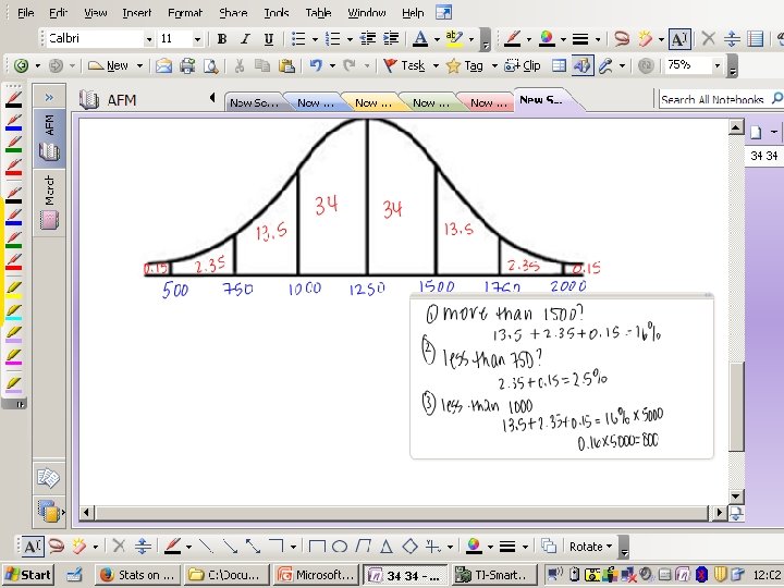 Suppose the mean weekly income at Microsoft is $1250, distributed normally, and the standard deviation is $250. Label a normal curve and answer the following questions: 1. What percentage of workers earn more than $1500 a week? 2. What percentage of workers earn less than $750 a week? 3. If there are 5000 workers, how many workers earn less than $1000 a week?