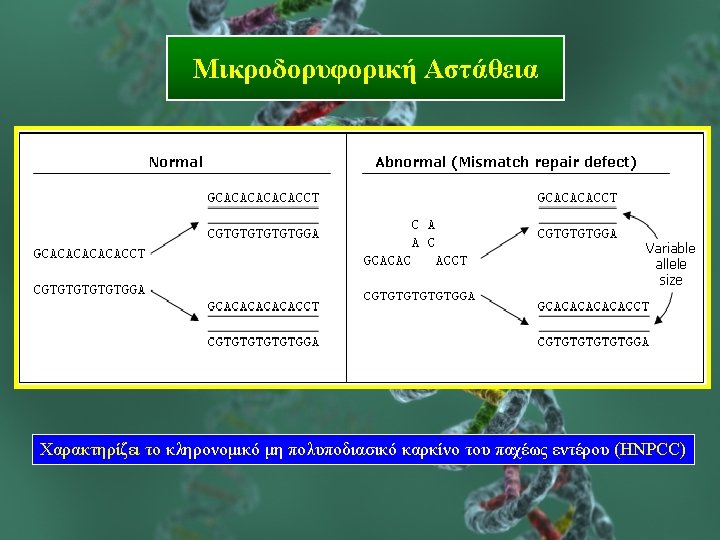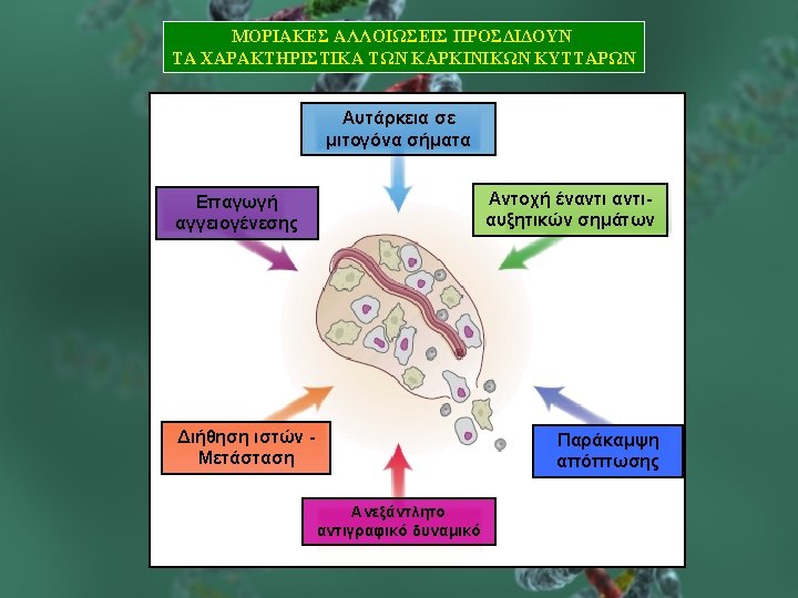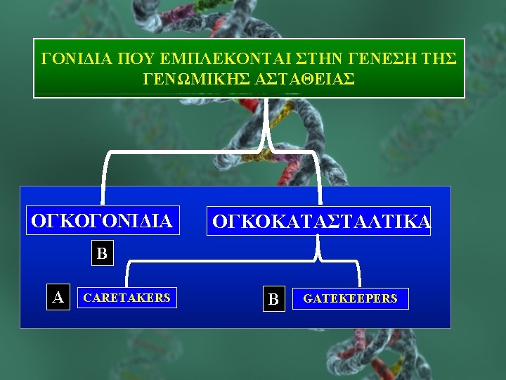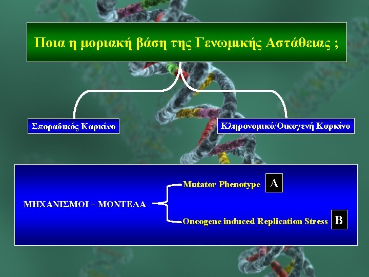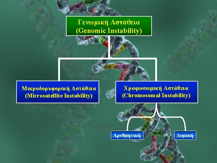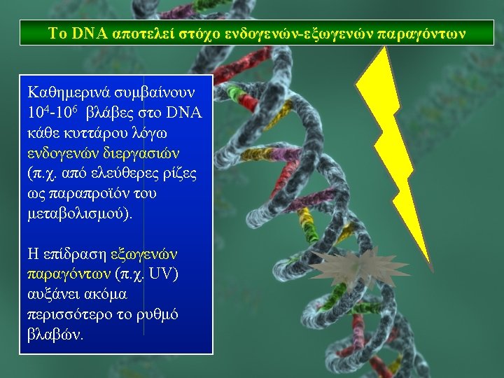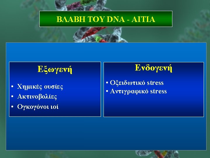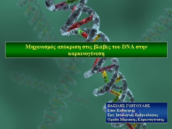φάσης Πότε λειτουργούν οι μηχανισμοί επιδιόρθωσης βλαβών του DNA; Μηχανισμός/Φάση G 1 S G 2/M NHEJ + + + HR - + + BER + + + NER + + + MMR + + + TSP + TS + NHEJ: Non Homologous End Joining, HR: Homologous Recombination, BER: Base Excision Repair, NER: Nucleotide Excision Repair, MMR: Mismatch Repair, TLS: Translesion Synthesis Polymerases, TS: Template Switch