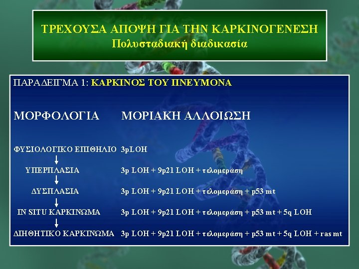 ΜΟΡΦΟΛΟΓΙΚΑ ΣΤΑΔΙΑ ΚΑΡΚΙΝΟΓΕΝΕΣΗΣ Normal Hyperplasia Dysplasia Tumour γH 2 AX 100 50 0 1 CHk 2 -p. T 68 100 50 0 1 p 53 100 80 60 40 20 0 p 14 p 21 100 80 60 40 20 0 100 1 2 3 4 1 50 N of samples = 16 0 N H 1 D T