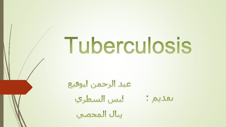 • Pathogenesis : v The patient is infected by Inhaling the bacteria which reach the alveoli of the lower & middle lobes v Alveolar macrophage ingests the bacteria but failure lysosomal infusion leads to granulomas formed which contain infection called Ghon’s focus v If reach to hilar lymph nodes called Ghon’s complex v Ghon’s complex Either undergos fibrosis & calcification to become Ranke complex OR go to latent phase