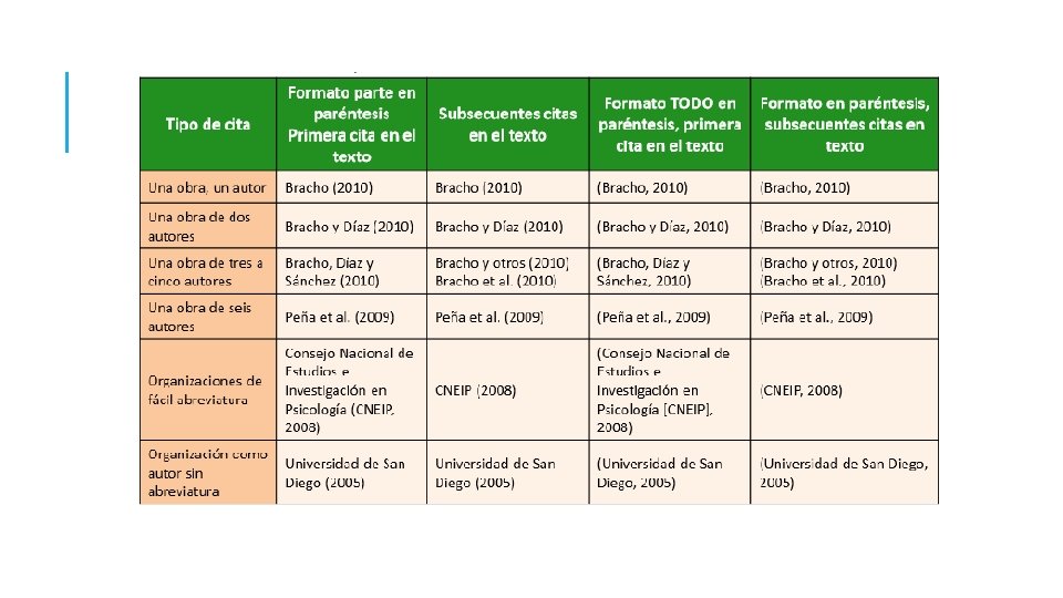 CITA DIRECTA q. Se encierra entre comillas si la cita tiene menos de 40 palabras q. Al final de cada cita, se añade entre paréntesis el autor, el año y la pagina q. Si la cita tiene mas de 40 palabras, se escribe el texto en bloque, sin comillas, en una línea aparte, con sangría de ½ pulgada q. En toda cita directa hay que reproducir textualmente lo que dice el material citado, incluyendo la ortografía y puntuación