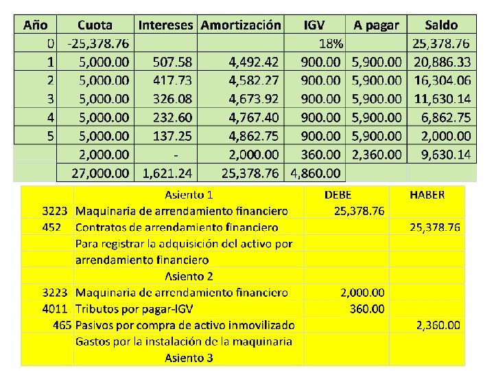 Arrendamiento financiero NIC 17 Se alquila una maquinaria durante un plazo de 5 años, siendo la renta anual de 5. 000 prepagables. La vida útil de la maquinaria son 5 años. Fecha de la firma del contrato, 1 -10 -2013. Se estima que la máquina tendrá un valor de 2. 000 cuando termine el contrato. Para los cálculos financieros se va a utilizar una tasa de interés del 2%. Valor razonable: 25, 000 Gastos de instalación: albañil y sistema eléctrico……………. . S/. 2, 000. 00