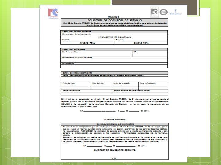 Recordar que siempre que se realice una actividad hay que rellenar el MD 750401, donde debe indicarse no sólo el nombre de la actividad a desarrollar, sino también el contenido Entregar al Responsable de AA. CC. EE. Al menos 1 semana antes de la actividad si ésta dura menos de una jornada escolar Al menos 2 semanas antes si su duración es igual o superior a la jornada escolar