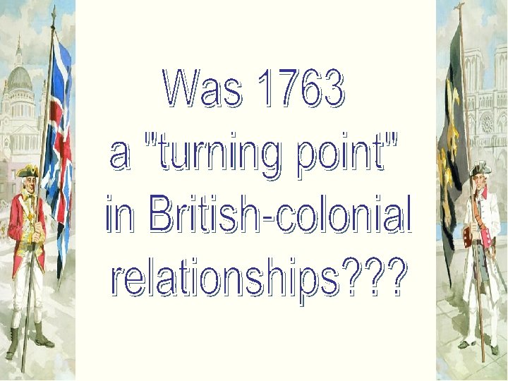 Effects of the War on Britain? 1. It increased her colonial empire in the Americas. 2. It greatly enlarged England’s debt. 3. Britain’s contempt for the colonials created bitter feelings. Therefore, England felt that a major reorganization of her American Empire was necessary!