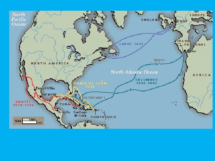 European Colonization • Spanish – Theme: • explore the Caribbean, Central, and South America. • Initially looking for a route to Asia, they turned to finding gold/sliver. – Christopher Columbus • First explorer from Spain • Trying to find the East Indies (India) for trade – Ponce de Leon • Explored Florida