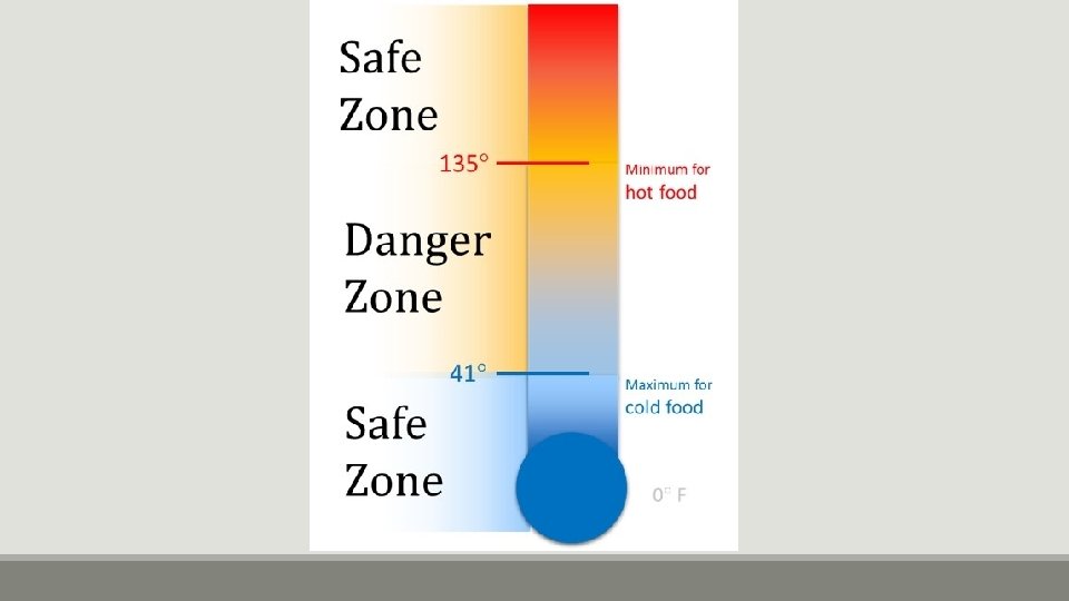 Safe Temperatures for TCS Foods KEEP COLD FOOD COLD DANGER ZONE 41 o (4 hours max) 135 o KEEP HOT FOOD HOT Less than Greater than o 41 o 135