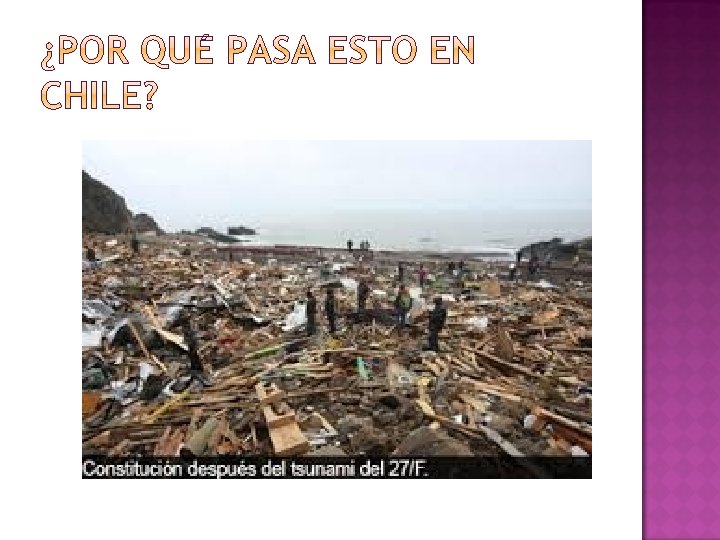 NO OLVIDES SON: � Terremotos � Maremotos � Erupciones volcánicas ¿POR QUÉ SON TAN FRECUENTES EN CHILE? � Los riesgos naturales tectónicos se originan por el choque de las placas. En el caso de Chile, la Placa de Nazca choca con la Placa Sudamericana.