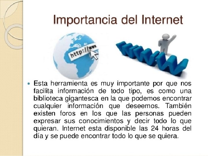 ¿Qué son los servidores? Son computadoras ordenadas al servicio de los usuarios ¿Qué son las páginas web? Son un tipo de archivos escritos en un lenguaje especial llamado HTML ¿Qué es un navegador? Es un software o programa utilizado para acceder a internet de ahi se encuentra: google firefox opera safari e internet explorer (un minuto de silencio por la ultima) ¿Qué es la velocidad de transferencia? Es la rapidez de conexión para el envío y recepción de datos. Se mide en kilobytes por segundo (kbps)