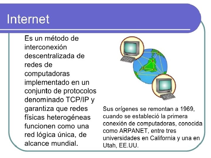 • Recuerda todo que sabes sobre la biotecnología tradicional y la biotecnología moderna. Luego, reflexiona y responde las siguientes preguntas: ¿Qué es internet? Es una red de computadoras distribuidas por todo el mundo que distribuyen información mediante cables de red, enlaces satelitales, cables submarinos y fibra óptica. Para la comunicación entre computadoras se usa un lenguaje o protocolo común TCP/IP, que son normas que indican cómo debe viajar la información y los datos por la red.