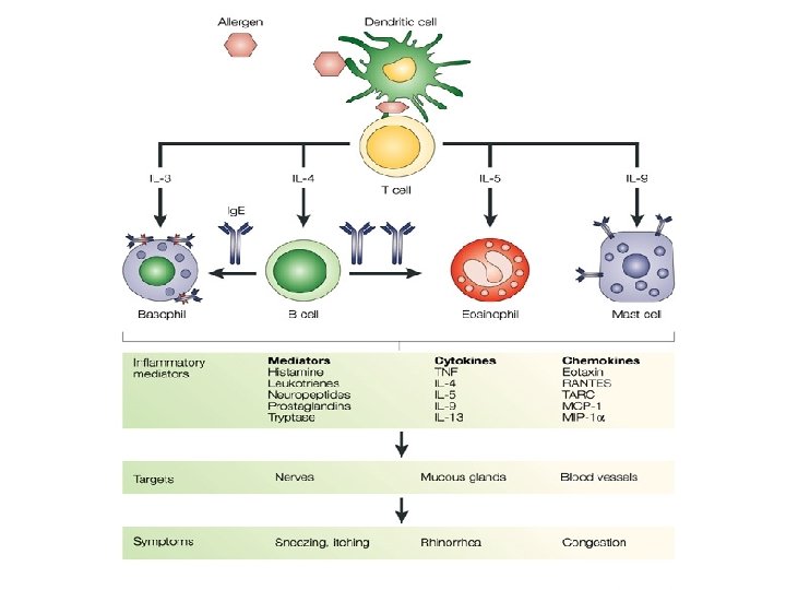 Allergic rhinitis • Sneezing, pruritus, rhinorrhoea, swollen turbinates, nasal polyps • Treatment options 1. Topical nasal corticosteroids 2. Topical antihistamines 3. Systemic antihistamines 1. Topical sympathomimetics (pseudoephedrine) 2. Prophylactic nasal sprays – Sodium cromoglycate 3. Desensitizing injections ( anaphylaxis)