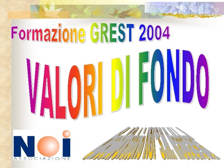 NOTA Questa presentazione in PPT è uno stralcio dei quattro laboratori creativi organizzati per la preparazione al GREST 2004 “Di Pi@zza in Piazza” presentato da NOI VENETO. Il presente lavoro si riferisce al laboratorio “Valori di fondo e spiritualità”. Per altro materiale rimandiamo al sito www. noigrest. it e al sussidio cartaceo e multimediale acquistabile presso il COMITATO TERRITORIALE NOI – VICENZA.