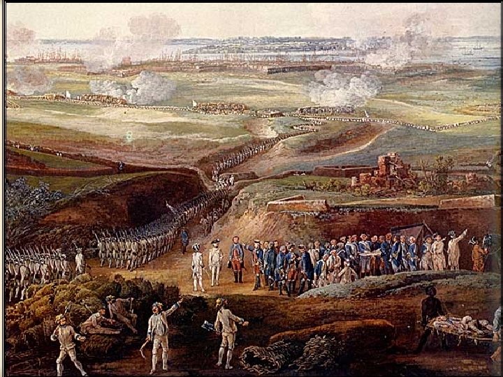Battle of Yorktown • Strategy included the use of the French navy, French troops and American troops. • French navy under the direction of Admiral de Grasse, placed a blockade around the Chesapeake Bay. • 15, 000 American and French troops surrounded 8, 000 British troops…… • General Cornwallis is trapped and is forced to his surrender his troops to Washington • Brings war to an end