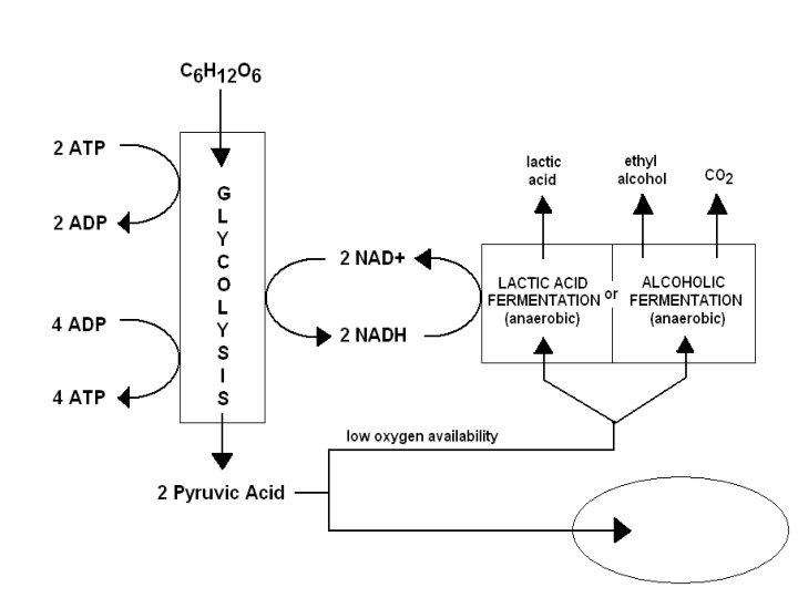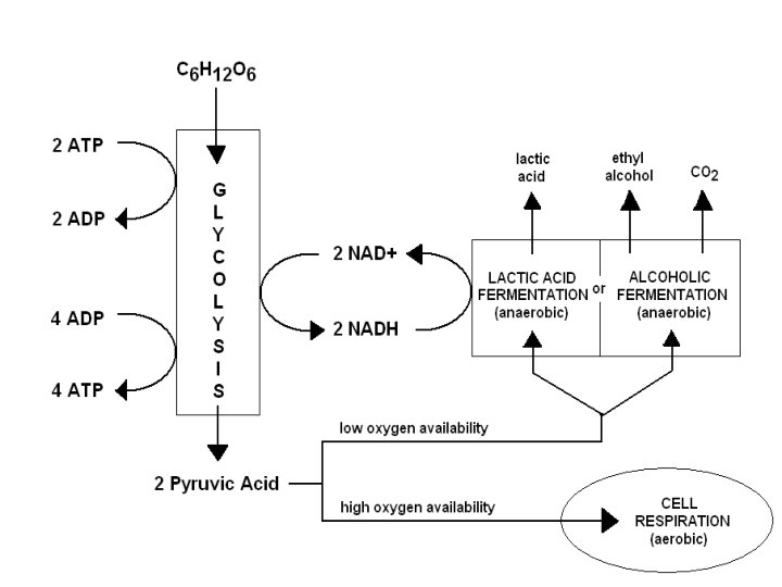 Remember… n n n The goal of fermentation is to generate NAD+ to keep glycolysis going in low oxygen conditions The e- from NADH are passed back to pyruvic acid molecules, generating different products and NAD+ If there is plenty of oxygen available, in most cells a different process occurs