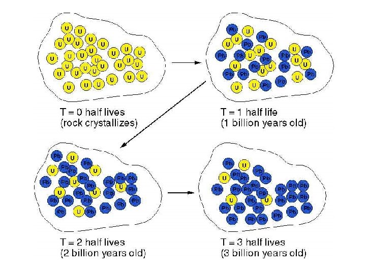 Parent Isotope Daughter Half-Life Uranium-238 Lead-206 4. 5 billion years Uranium-235 Lead-207 704 million years Thorium-232 Lead-208 14. 0 billion years Rubidium-87 Strontium-87 48. 8 billion years Potassium-40 Argon-40 1. 25 billion years Samarium-147 Neodymium-143 106 billion years
