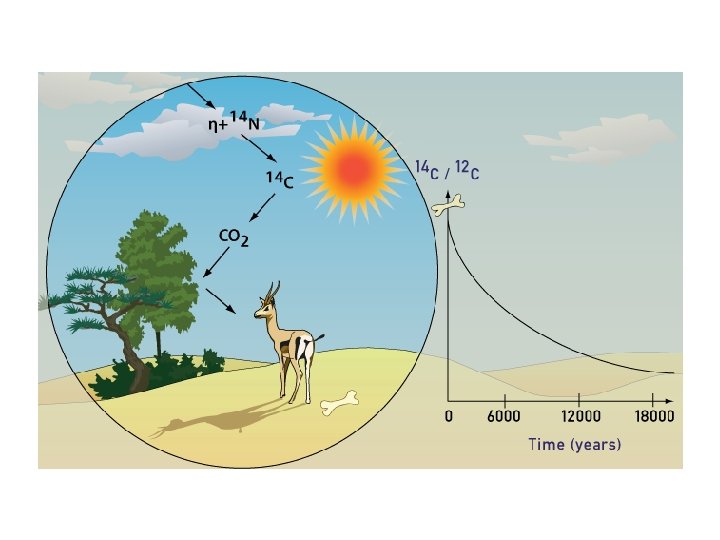 CARBON-14 ● By measuring the amount of C-14 compared to N-14, the time of death can be calculated ● C-14 has a half life of 5, 730 years ● Since the half life is considered short, it can only date organisms that have died within the past 50, 000 -60, 000 years