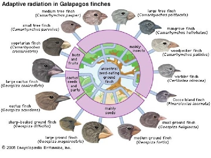 Examples: **When the equilibrium is upset, change can occur in a short period of time ● EX: A small group of organisms migrate to a new environment – Organisms evolve quickly to fill available niches (Galapagos Finches) ● EX: A small population is cut off from its original population