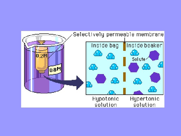 Plant Type of cell - ______ hypotonic Type of solution - _______ in How will water move? _____ 8. 5% Na. Cl 91. 5% H 2 O 0% Na. Cl Distilled water osmosis By what process? _______ 100% H 2 O out How will salt move? ______ diffusion By what process? ________ swell and become rigid What will happen to the cell? _______ turgor pressure Biological term - _________
