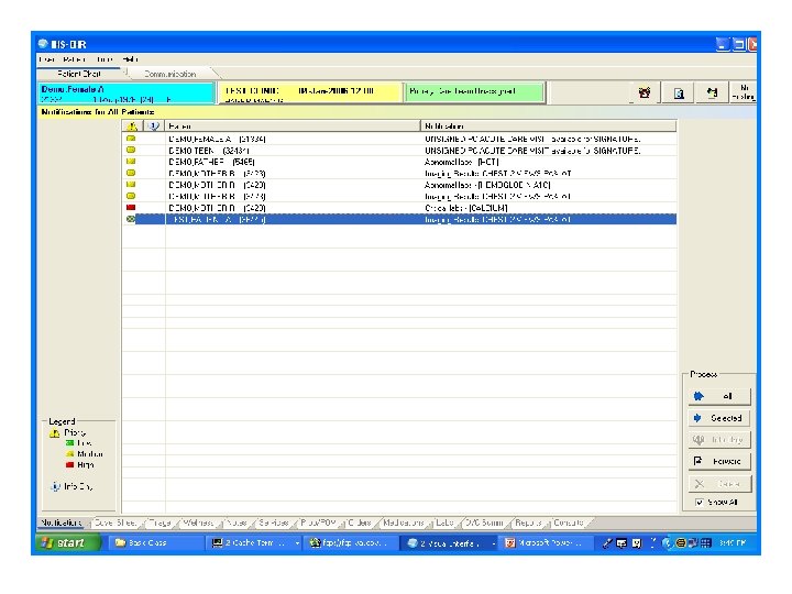 Processing Notifications • Process All-use Next and Stop buttons in lower right corner of EHR to move to next notification. • Process Selected-select notifications to address. • Process Information only notifications. • Use the forward button to send the notification to another user.