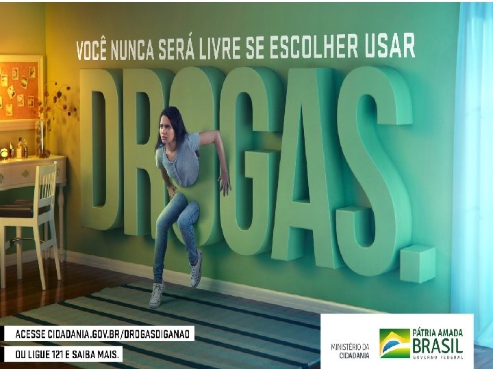 Ações • Quadruplicado o número de vagas para receber dependentes químicos em comunidades terapêuticas. • Comunidades terapêuticas: a partir de 2018: 2900 vagas e em 2019: 10. 883 vagas • Curso Compacta - 2000 vagas. • Programa Progredir. • Programa Empreendedor Mais Brasil • PROFESP • Linha 121 Opção 4. • Campanha “Você nunca será livre se escolher usar drogas" • Ações de prevenção em eventos esportivos. • Ajuda mútua: AA, NA, amor exigente • Associação : Suicídio - Associação Psiquiátrica Brasileira • OBID