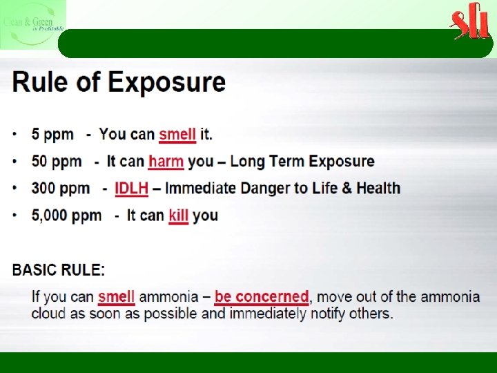 Ammonia Characteristics Ø Ammonia is a colourless gas with a characteristic pungent smell. It is lighter than air, its density being 0. 589 times that of air. It is easily liquefied due to the strong hydrogen bonding between molecules; the liquid boils at − 33. 3 °C (− 27. 94 °F), and freezes at − 77. 7 °C (− 107. 86 °F) to white crystals. Ø Ammonia liquid must be stored under pressure or at low temperature. A storage vessel capable of 250 psi (1. 7 MPa) is suitable to contain the liquid.