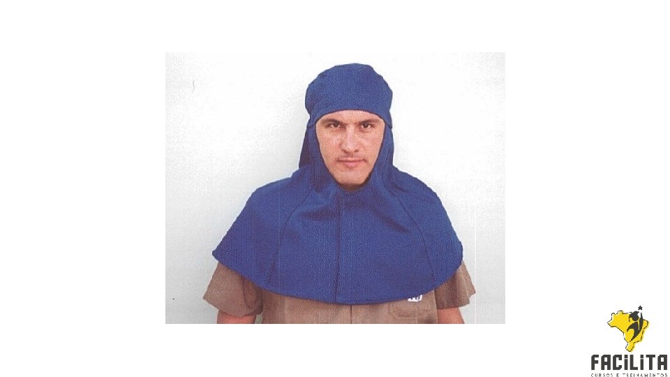 � Capuz: Proteção do crânio e pescoço contra riscos de origem térmica, respingos de produtos químicos e contato com partes giratórias ou móveis de máquinas. Consistem em elementos que tem a função principal de evitar o aprisionamento e arrancamento dos cabelos ou do couro cabeludo. EX. : engrenagens, correntes e outros mecanismos rotativos de máquinas.