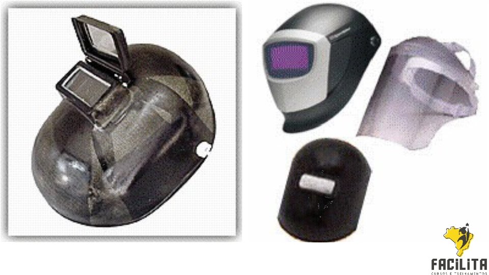 � Máscara de solda: tem como função dar proteção à face e aos olhos contra impactos de partículas volantes, radiação ultravioleta e infravermelha e, contra luminosidade intensa.
