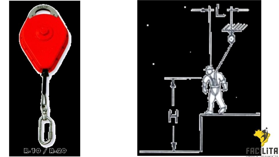• Trava quedas com cabos retráteis Havendo movimento brusco, tropeço, desequilíbrio do operário ou quebra de telha, o equipamento travase imediatamente e evita a queda da pessoa. Pode ser usado fixo num ponto acima do local de trabalho ou deslocando-se na horizontal por um trole.