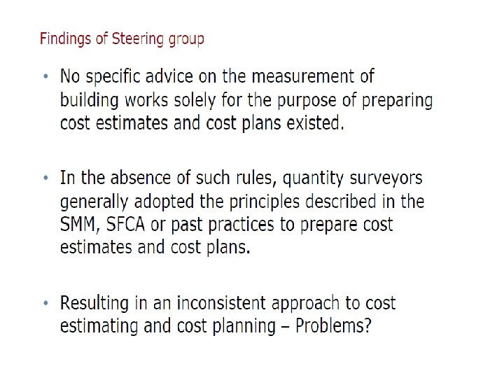Actions • The first set of rules that make up the NRM was published in February 2009 and covers order of cost estimating and elemental cost planning. Copies are available online via isurv http: //www. isurv. com/nrm or from RICS Books at http: //www. ricsbooks. com/product. Info. asp? product_id=17792. • 214 456 copies were downloaded between February and July 2009. • The RICS member working group will be producing two further volumes covering procurement and whole life costing. • RICS will be promoting the NRM to the OGC and other UK Government departments involved in construction procurement. • RICS Scotland recently produced research on the whole life costing of sustainable design.