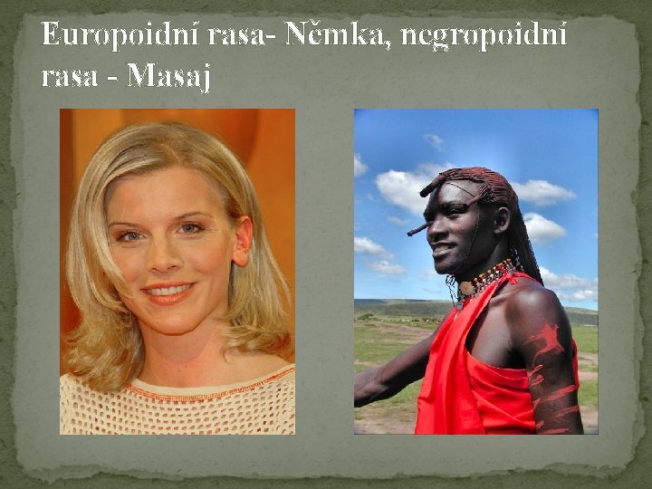 Europoidní rasa- Němka, negropoidní rasa - Masaj