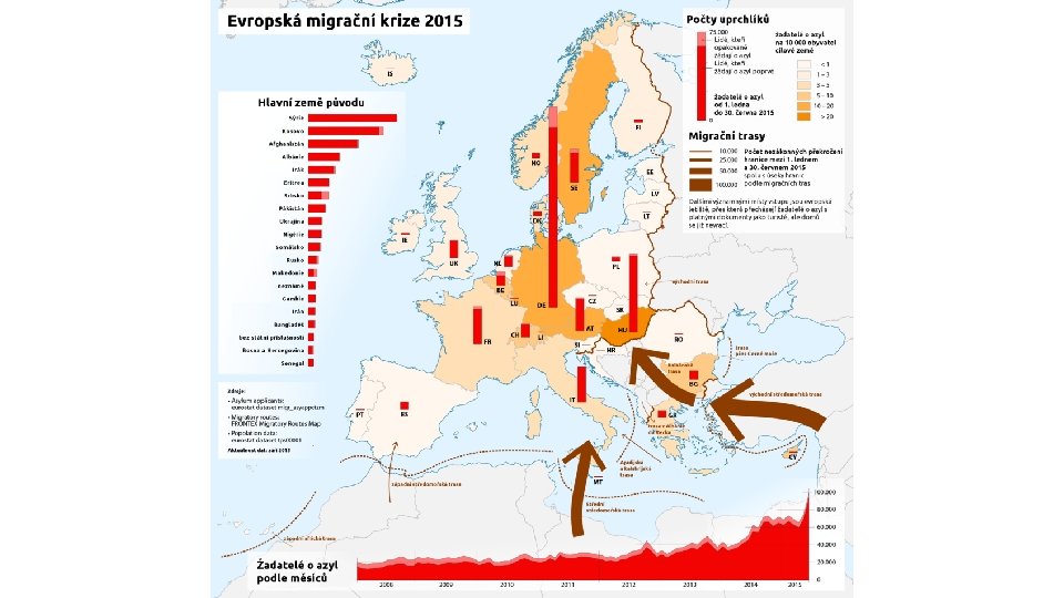 Migrační krize 2015 - Kolik imigrantů přišlo? • za rok 2015 bylo v ČR podáno celkem 1 525 žádostí o azyl • v Německu za celý rok 2015 požádalo o azyl více než 441 000 přistěhovalců. • Na 1000 obyvatel: • ČR 0, 15 uprchlíka (= cca. 1 na 10 000 obyvatel) • Německo 5, 5 uprchlíka na 1000 obyvatel • Migrační krize se ČR v podstatě nedotkla, zato v Německu požádalo o azyl v letech 2014 -2016 cca. 1 milion lidí.