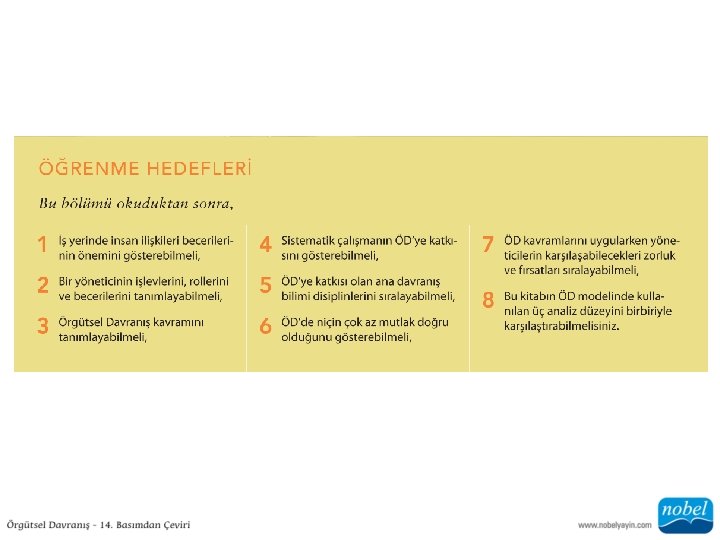 Yönetim Becerileri • Teknik Beceriler: Uzmanlık bilgilerini ve uzmanlığı uygulayabilme becerisi. • Beşeri Beceriler: Hem bireysel olarak hem de grup içerisinde diğer bireylerle çalışabilme, onları anlayabilme ve motive edebilme becerisi. • Kavramsal Beceriler: Karmaşık durumları teşhis ve analiz edebilecek zihinsel yetenek.