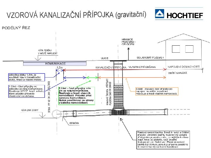 Obsah § Úvodní slovo § Organigram (představení účastníků výstavby) § Základní informace o HOCHTIEF CZ § Základní parametry projektu § Harmonogram projektu § Kanalizační přípojky § Projektová dokumentace kanalizační přípojky § Diskuze, dotazy