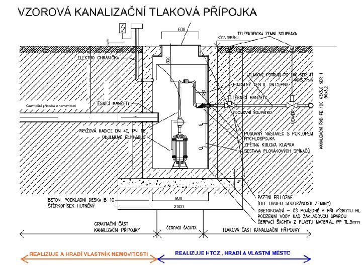 Kanalizační přípojky § Kanalizace „prostřední“ Kunčice: § Gravitační stoky - budou vysazeny odbočky pro přípojky na hlavních stokách. § Kanalizace „horní“ Kunčice: § Gravitační stoky – budou zrušeny stávající jednotné stoky a přepojeny stávající přípojky na stoky XXII a XIIb. § Tlakové řady – bude vybudováno celkem 27 tlakových přípojek ukončených domovní čerpací jímkou. Vlastník napojované nemovitosti si musí zajistit napojení splaškových odpadních vod na čerpací jímku.