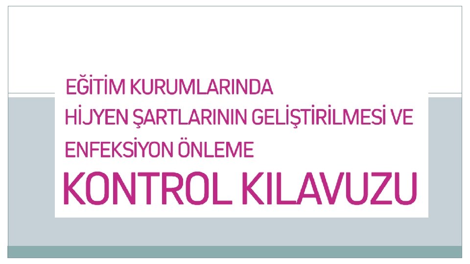 3. KORUNMA VE KONTROL ÖNLEMLERİ 3. 1. Hazırlık Hijyen ve sanitasyon kaynaklı salgın hastalıkların eğitim kurumlarında bulaşıyı sınırlamak, kontrol hiyerarşisi olarak kabul edilen bir dizi enfeksiyon önleme ve kontrol işlemlerini gerektirir. İdari kontroller, kurumsal düzeyde (örneğin uygun süreçlerin, sistemlerin ve mühendislik kontrollerinin tasarımı/kullanımı, uygun iş donanımının ve materyallerinin sağlanması/ kullanılması) enfeksiyonun önlenmesine yardımcı olmak ve enfeksiyonun bulaşmasını kontrol etmek ve sınırlamak için uygulanır. Etkili çevresel dekontaminasyon da yeterli havalandırma veya havalandırma sistemleriyle kontrol sağlar; fiziksel bariyerler ve önlemler sayesinde enfeksiyona maruz kalma azaltılır.