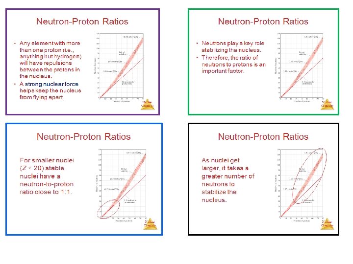 Nuclear stability. 20 In determining nuclear stability, ratio of neutrons to protons (N/Z) important Notice lower part of valley (N/Z = 1) Bi last stable (nonradioactive) isotopes N/Z too high: above valley, too many n, convert n to p, betadecay N/Z too low: below valley, too many p, convert p to n