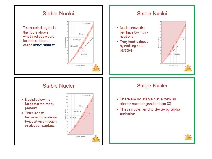 Type-II Based on stability of nucleus Mattauch’s rule (1934): Adjacent isobars cannot be stable. 2 stable isobars separated by an unstable daughter. e. g. the isobar where A=40: 40 Ar, 40 K and 40 Ca Even vs. odd Magic #’s: 2, 8, 10, 28, 50, 82, 126 Nuclides with either Z or N = a “magic #” are more likely to be stable