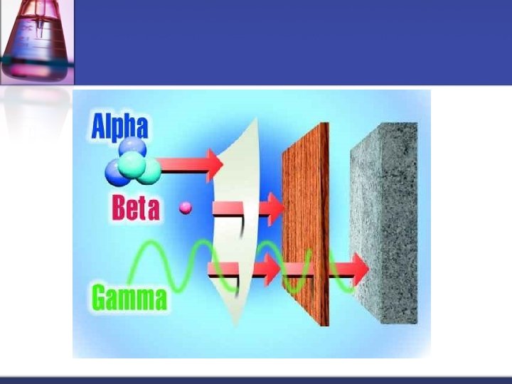 Summary of Particles Particle Symbol Mass Alpha 4 2 He Ability to go through things 4 weak Beta 0 e -1 0 medium Gamma γ 0 strong