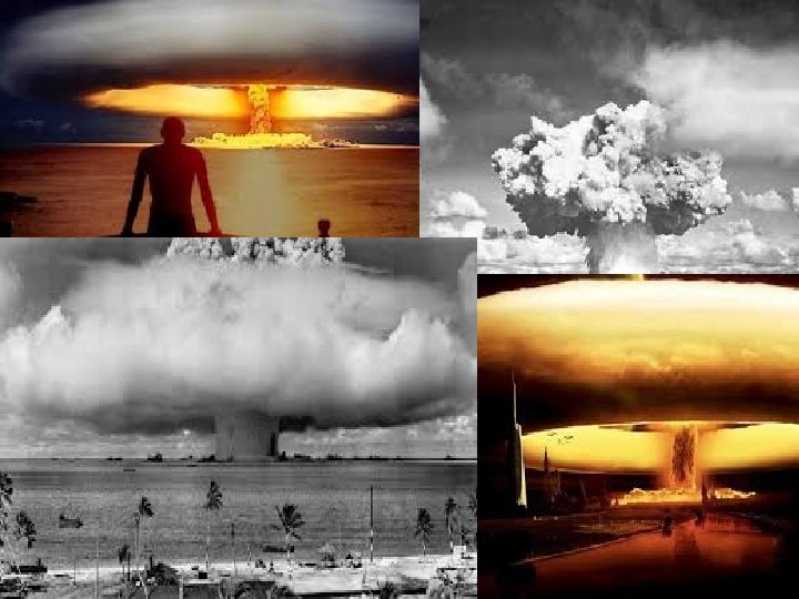 NUCLEAR BOMB • Nuclear bomb is one of the most destructive kinds of weapon. The first nuclear bomb was made during the World War II as a result of the secret project “Manhattan” by the American government. Some of the most famous physicists and scientists, took part in than project. • Thermonuclear bomb is a kind nuclear weapon which realises very large amounts of energy from the reaction of nuclear fusion and it can be much stronger than an atomic bomb. It’s known as H-bomb.