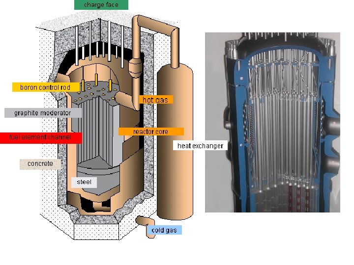 What is needed to make use of the energy from nuclear fission? Uranium-235. Natural uranium from mines is mainly U-238 and so must be ENRICHED to raise the % of U-235 1. FUEL RODS –U-235 2. CONTROL RODS– ABSORB surplus NEUTRONS. 3. Water acts as a coolant. Its molecules gain KE from the neutrons. 4. Reactor core is made of thick steel to withstand high pressure and temp. The core is enclosed by thick concrete to absorb radiation. REACTOR CORE