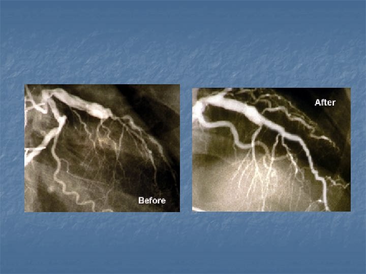 Cerebral Angiogram n This image taken before angioplasty: This patient had episodes of weakness, leading to the angiogram. The angiogram shows a very narrowed artery supplying the right side of brain. This vessel is within the skull on the surface of the brain