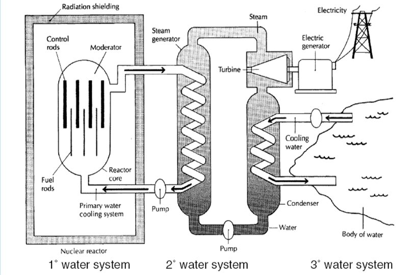 I. Using Nuclear Reactions to Generate Power 4) coolant – water acts as a coolant and transports heat between the reaction and the steam turbines to produce electric current Steam
