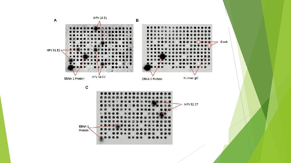 Results 98 genes were spotted from 12 different strains of HPV Identified HPV 16 E 1, E 2 HPV 31 E 2 HPV 52 E 7