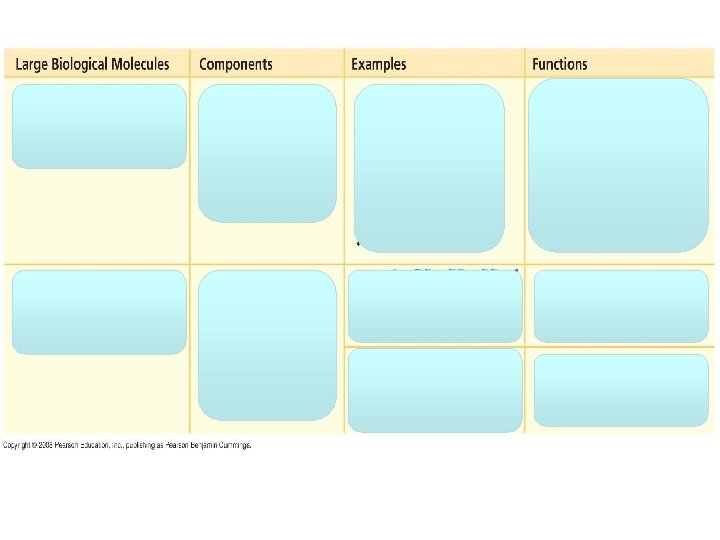 Macromolecule Monomers or components Polymer or larger molecule Type of linkage