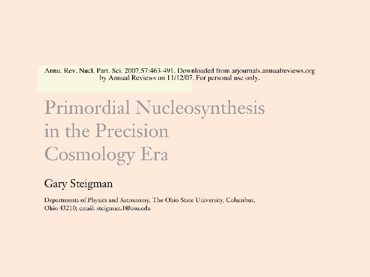 El hecho de que no todo el deuterio es convertido en helio cuando el Universo se enfría por debajo de 0. 1 Me. V sugiere que muy poco después la reacción de captura de un nuevo nucleón deja de satisfacer el criterio de Gamow. Esta observación nos permite vincular la densidad de bariones y la de fotones