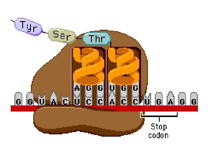 Termination Step 1. The polypeptide chain is at the P site. The stop codon at the A site