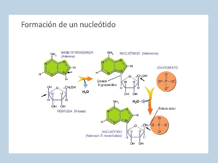 • Nucleósido = Pentosa + Base nitrogenada. • Nucleótido = Pentosa + Base nitrogenada + Ácido fosfórico. • Polinucleótido = Nucleótido +. .